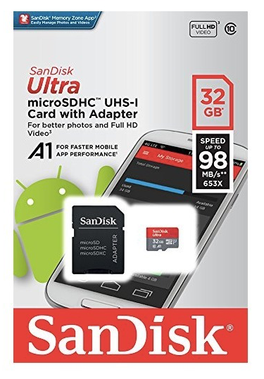 - La Memoria Micro Sd Sandisk Clase 10 A1 98mb 32GB es perfecta para grabar y ver videos full HD, con espacio para aún más horas de video.